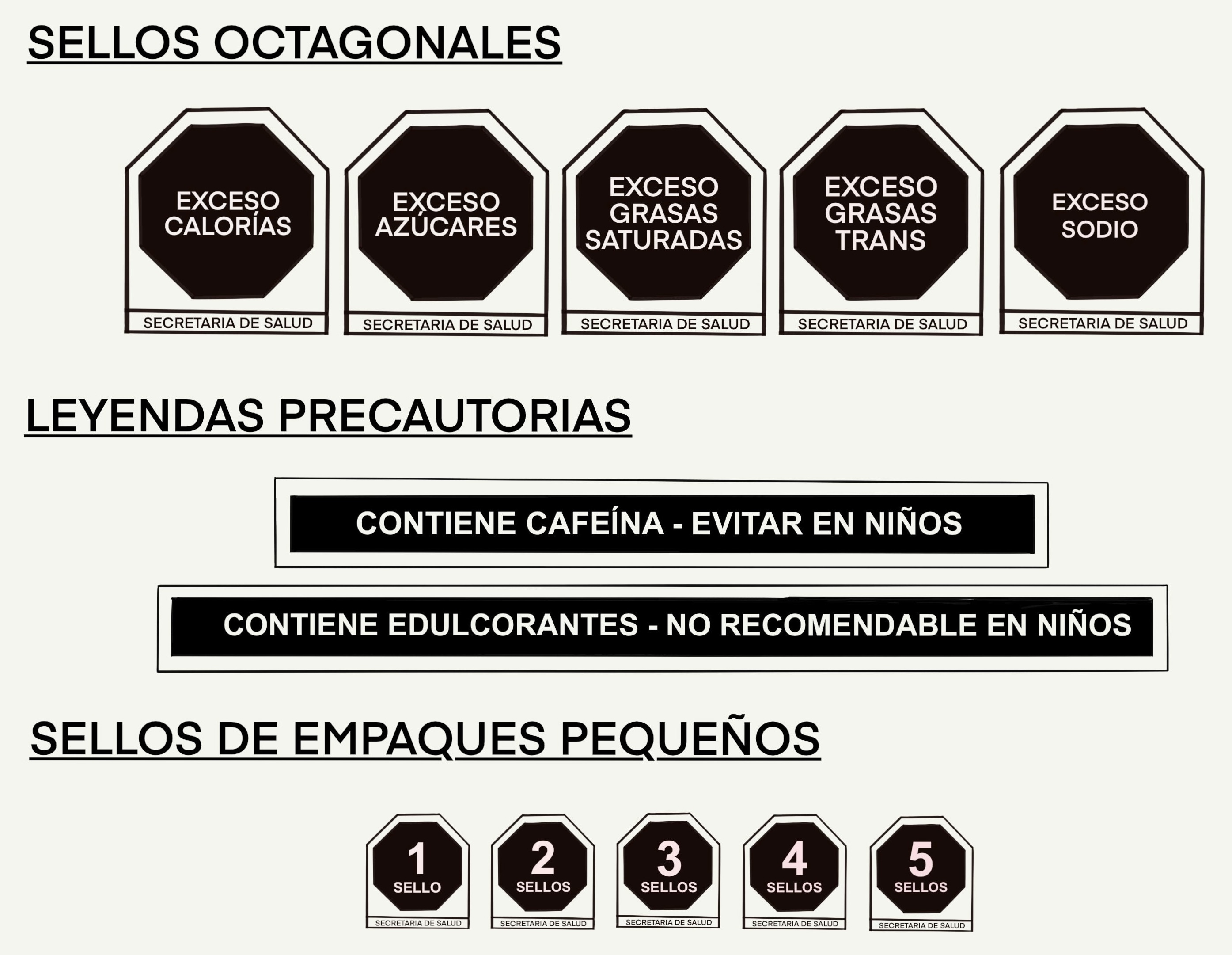 La segunda distingue los alimentos en cuatro grupos según su grado de procesamiento. Se diferencian: (1) los alimentos naturales o mínimamente procesados (frutas y verduras, leguminosas, carne y pescado fresco); (2) los ingredientes culinarios procesados (sal, azúcar, aceite, especias); (3) los alimentos procesados (alimentos preparados en casa a partir de los alimentos naturales y los ingredientes culinarios procesados), y (4) los alimentos ultraprocesados (productos industriales con muchos aditivos y poco nutritivos). Estos últimos son fáciles de reconocer ya que en su empaque tienen los siguientes sellos y leyendas de advertencia: